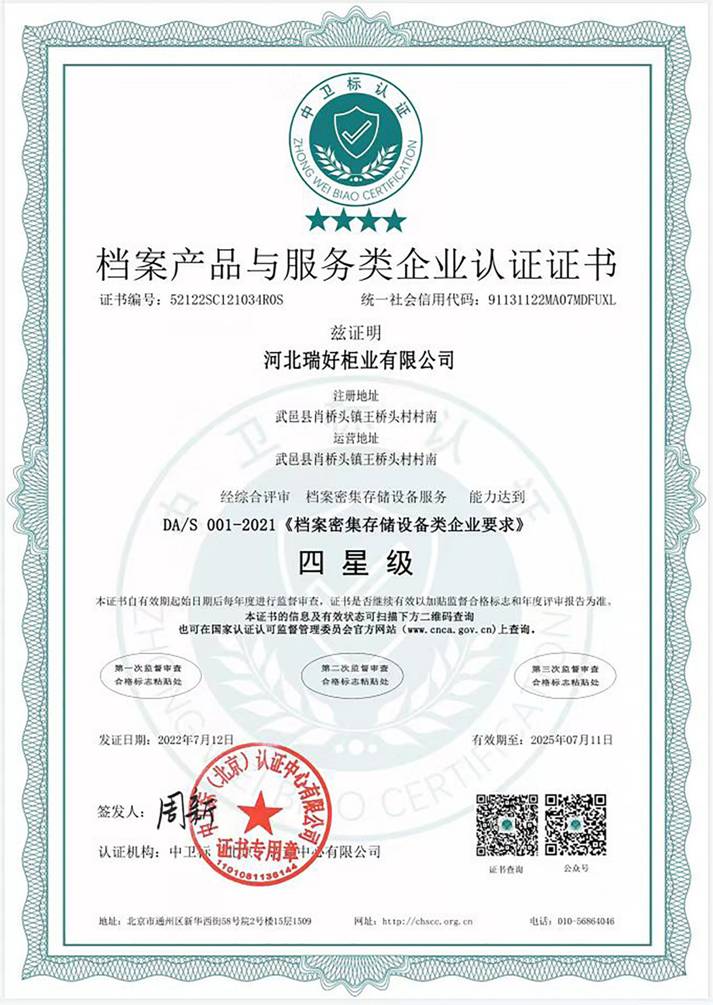 檔案產(chǎn)品與服務(wù)類企業(yè)認(rèn)證證書