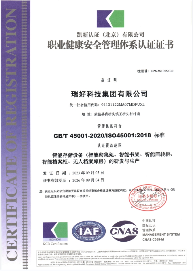 職業(yè)健康安全管理體系認(rèn)證證書